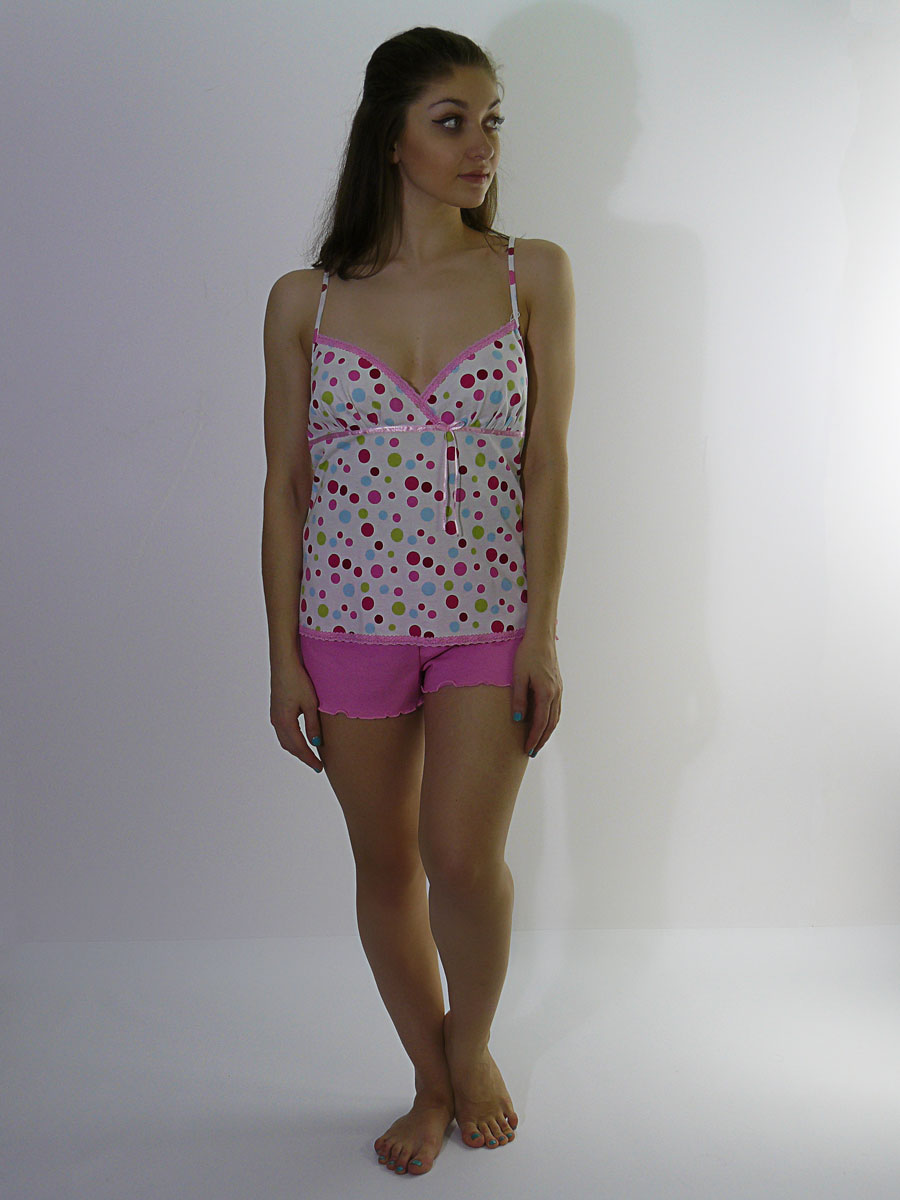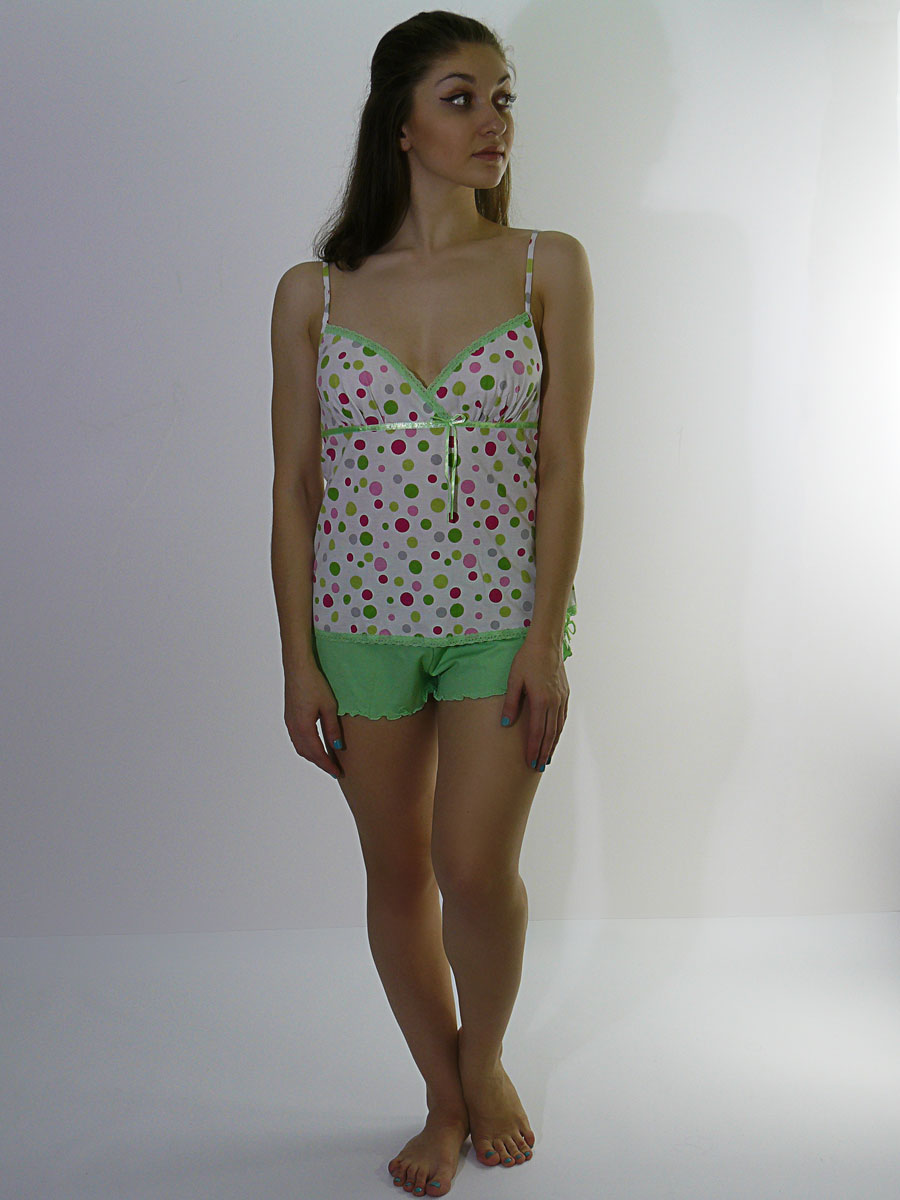 Комплект: майка на тонких бретелях и шорты.