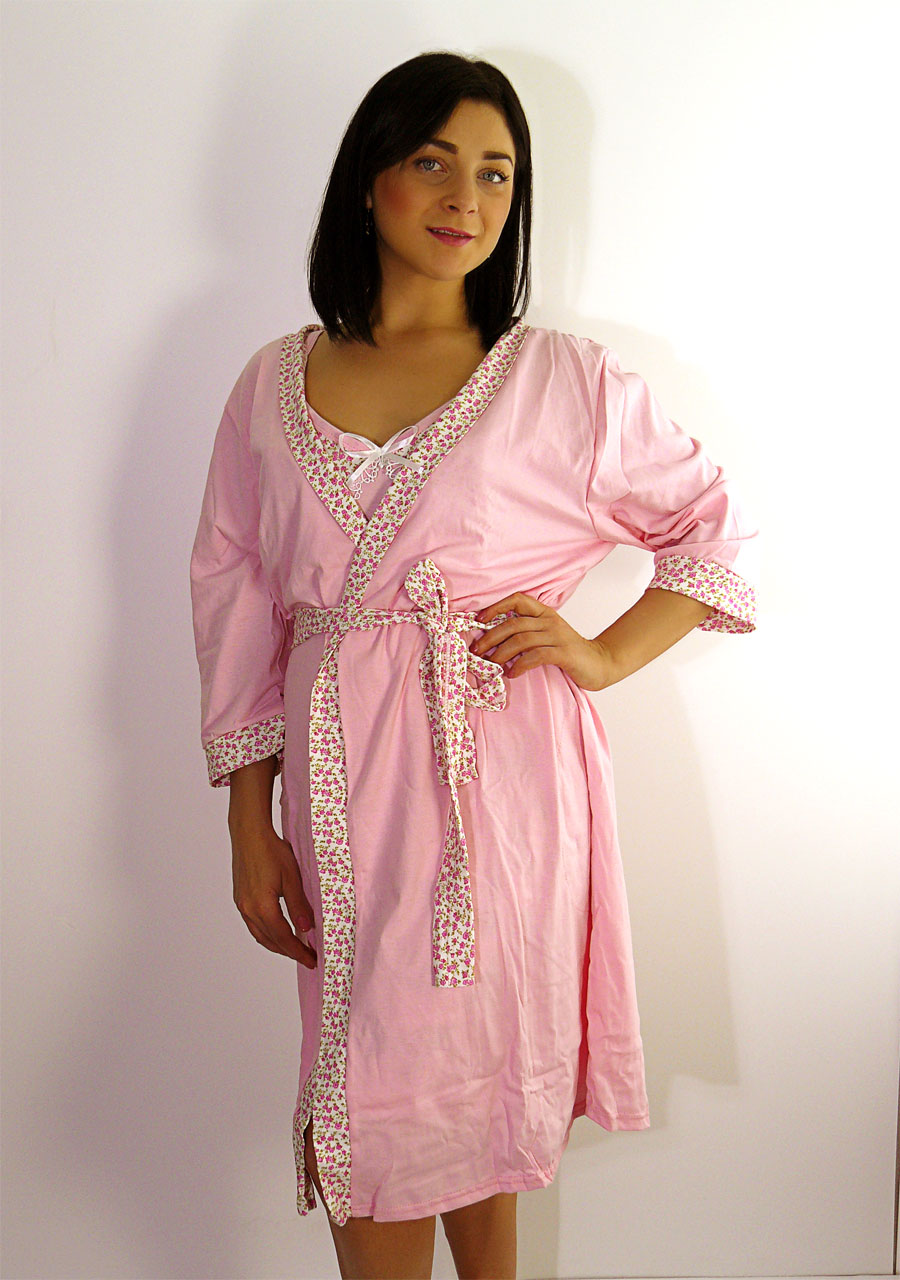 В комплект входят: сорочка на узких бретелях и халат ( рукав 3/4 ),