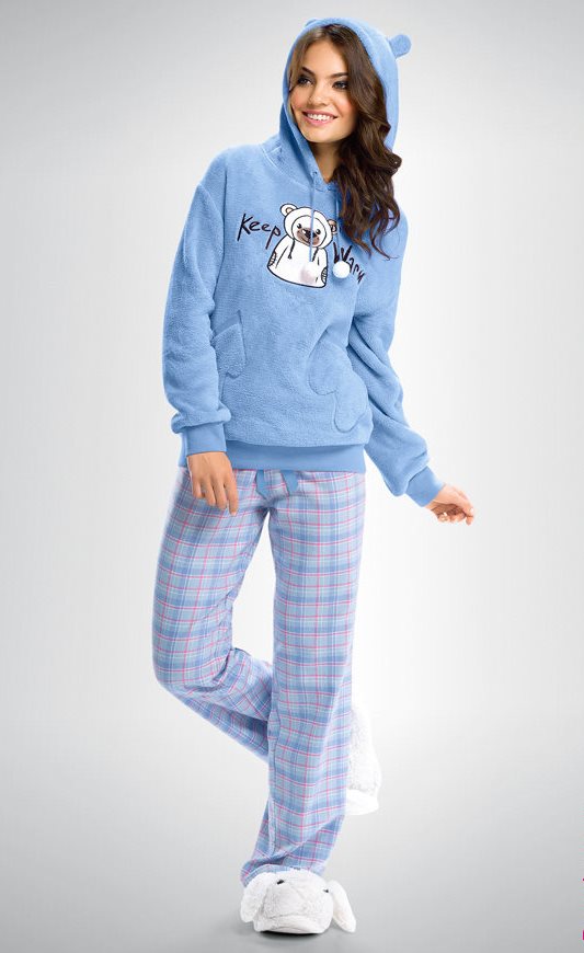 Джемпер из искусственного меха c трикотажным переплетением, очень мягкий, приятный на ощупь с аппликацией. Брюки: ткань фланелевая, легкая, комфортная. Превосходная пижама для комфортного отдыха.