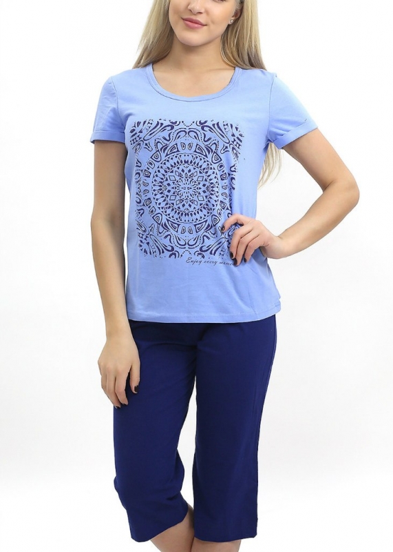 Состав изделия домашней одежды для женщины и муж.: Комплект ( бриджи + футболка )