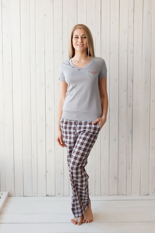 Состав изделия домашней одежды для женщины и муж.: Комплект ( брюки + футболка )