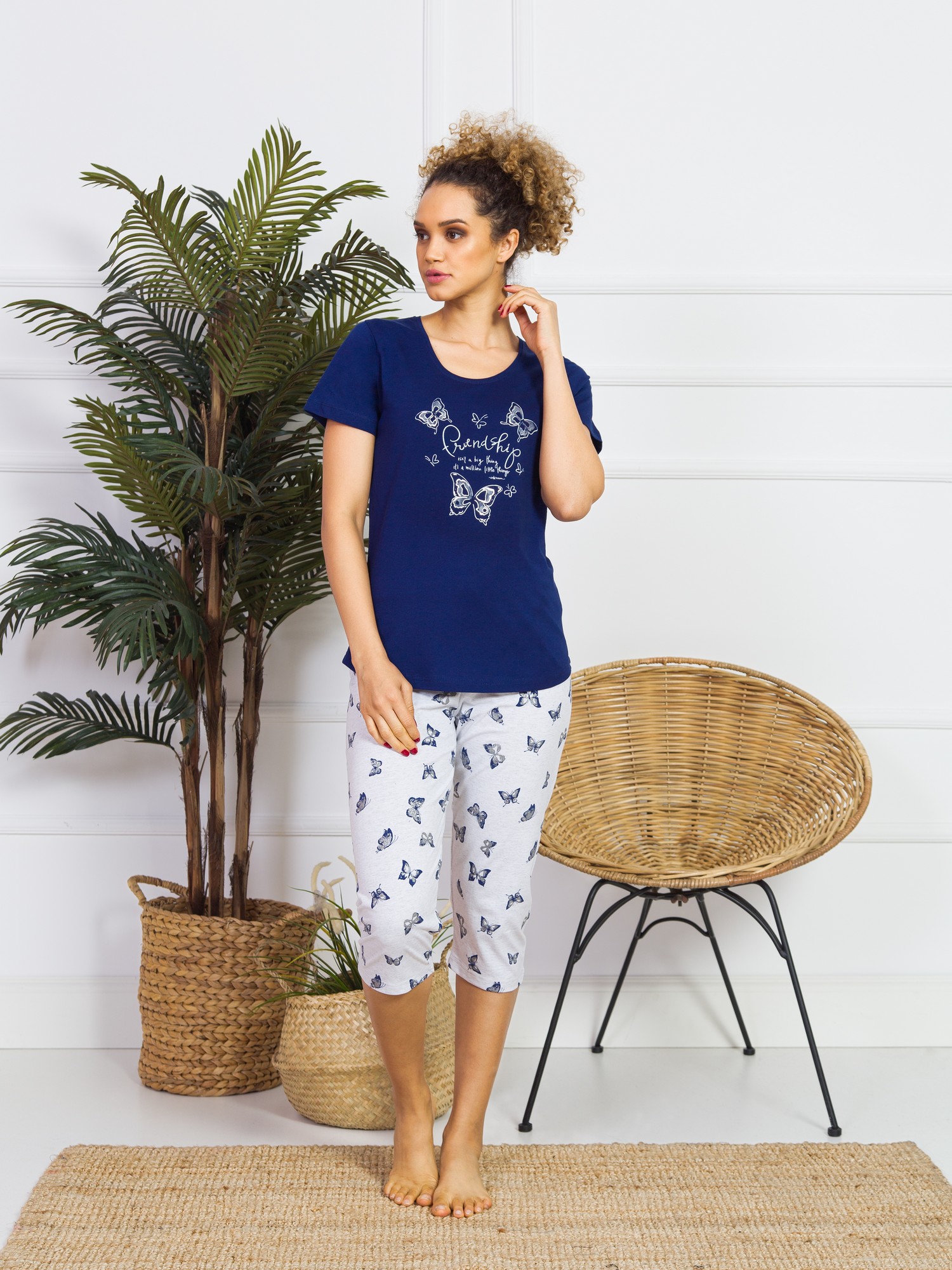 Состав изделия домашней одежды для женщины и муж.: Комплект ( бриджи + футболка )
