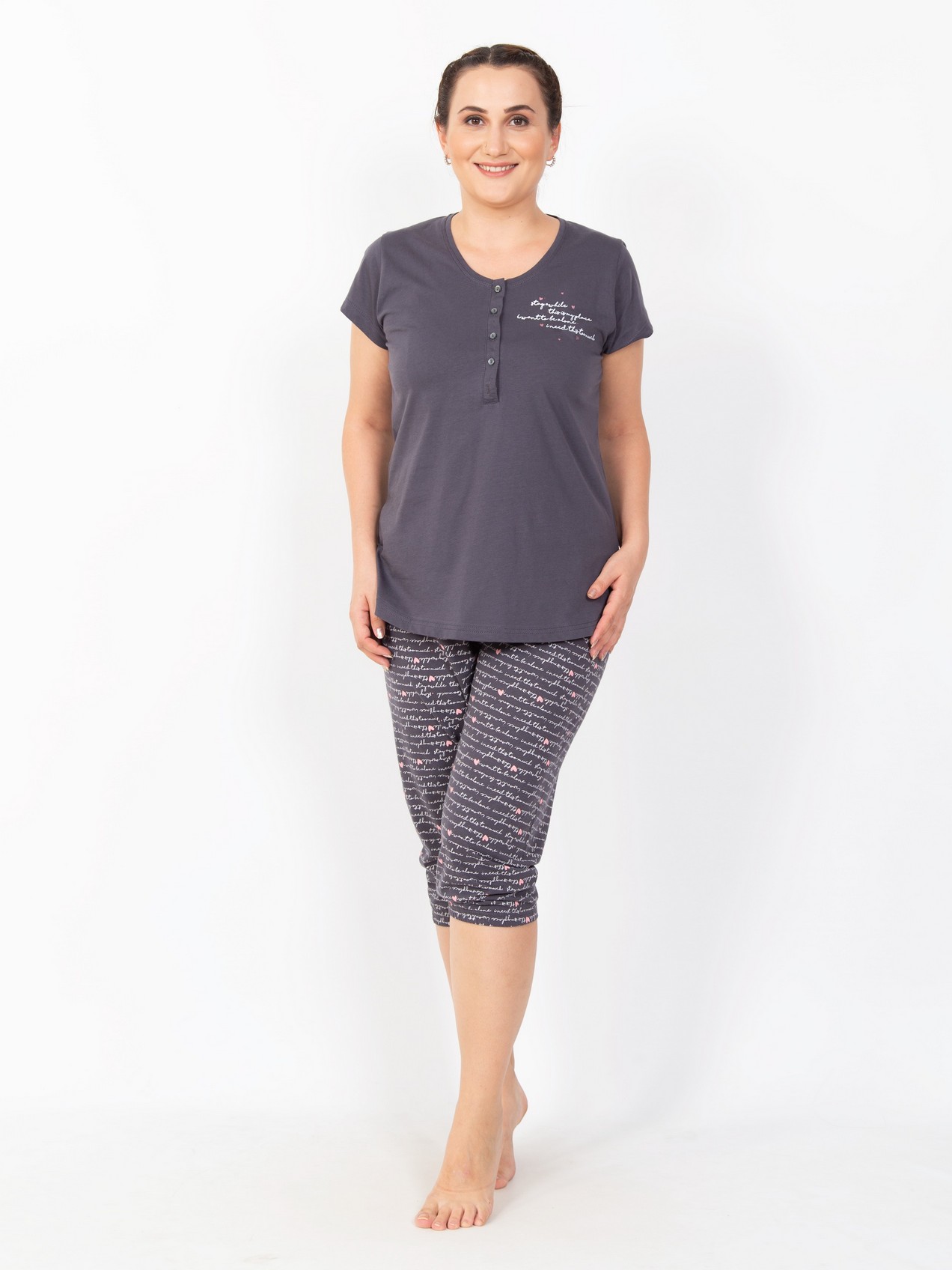 Женский домашний комплект прямого кроя. Ткань дышащая, легкая, износостойкая и маломнущаяся, а также легко стирается.