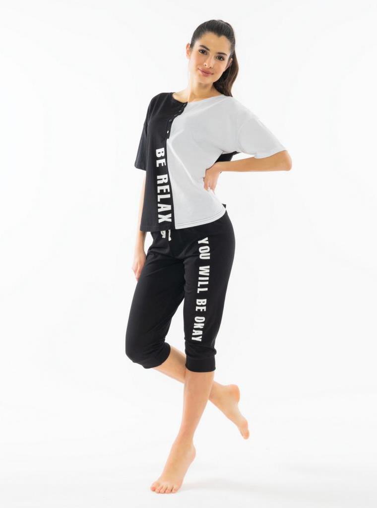 Состав изделия домашней одежды для женщины и муж.: Комплект ( бриджи + футболка )