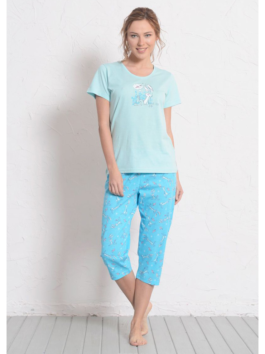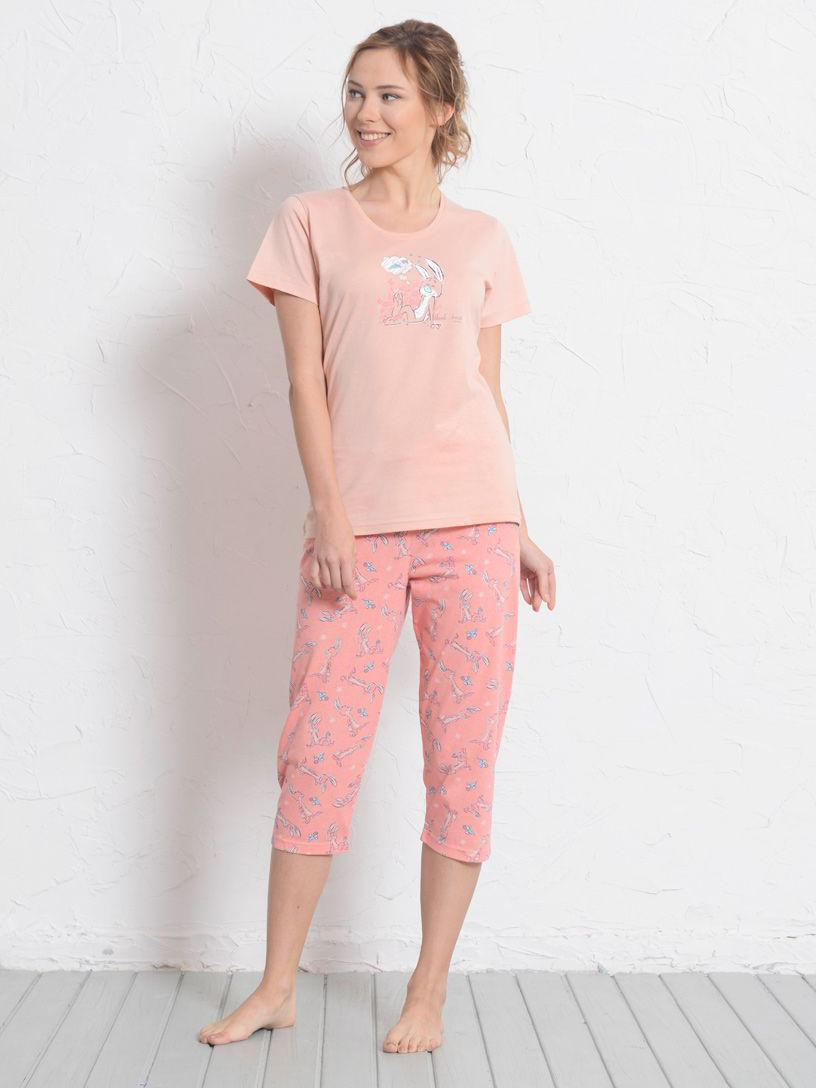 Состав изделия домашней одежды для женщины и муж.: Комплект ( бриджи + футболка )