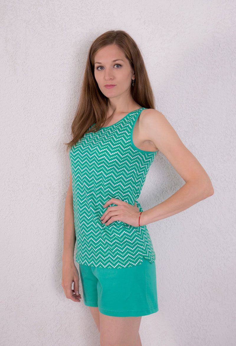Красивый домашний комплект из майки без рукавов и коротких шорт с кулиской на поясе. Изделие из мягкого трикотажного полотна, отличный вариант для дома на каждый день.
