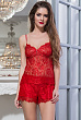 Комплект с шортами Mia-Amore выполнен из ажурного французского кружева Шантильи (Chantilly). Отрезной лиф топа декорирован изящным бантиком со сверкающей подвеской. Шорты из кружева продублированы подкладкой из атласа в тон.