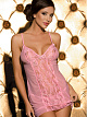 Короткая сорочка на тонких бретелях. Выполнена из полупрозрачной ткани в сочетании с нежным кружевом. На спине тонкие лямки пересекаются крест-накрест, имеется игривый разрез. В комплекте идут трусики-стринги.