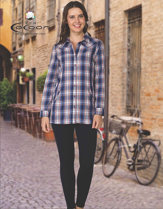 Домашний отдых станет еще более комфортным с новой коллекцией трикотажа Cocoon. Комплект состоит из рубашки и лосин. Рубашка на пуговицах, длинный рукав с манжетами на пуговицах, по бокам два внутренних кармана. Ткань рубашки - нежная фланель. Лосины из плотной ткани, на резинке.