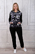 Костюм из комбинированного велюра кофта + брюки. Кофта полуприлегающего силуэта с капюшоном на молнии длинной до уровня бёдер. На полочке присутствуют карманы. Рукав втачной базового покроя по низу на манжете. Полочка и манжета выполнены из набивного велюра. Низ кофты обработан планкой. Брюки полуприлегающего силуэта из однотонного велюра по низу на манжете.