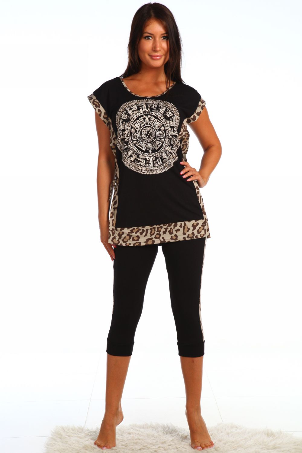 Костюм состоит из футболки с коротким рукавом и бридж.