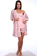 Костюм состоит из трех вещей: майка на узких бретелях,шорты и халат на запахе, рукав 3/4.