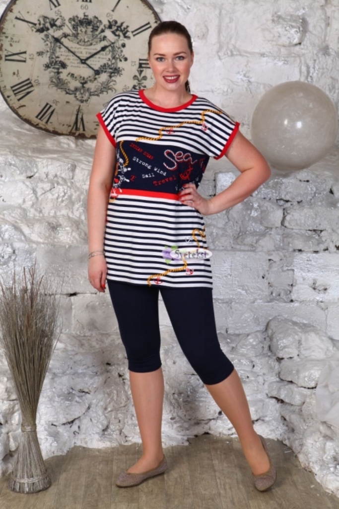 Костюм из вискозы: футболка с коротким цельнокроеным рукавом и бриджи.