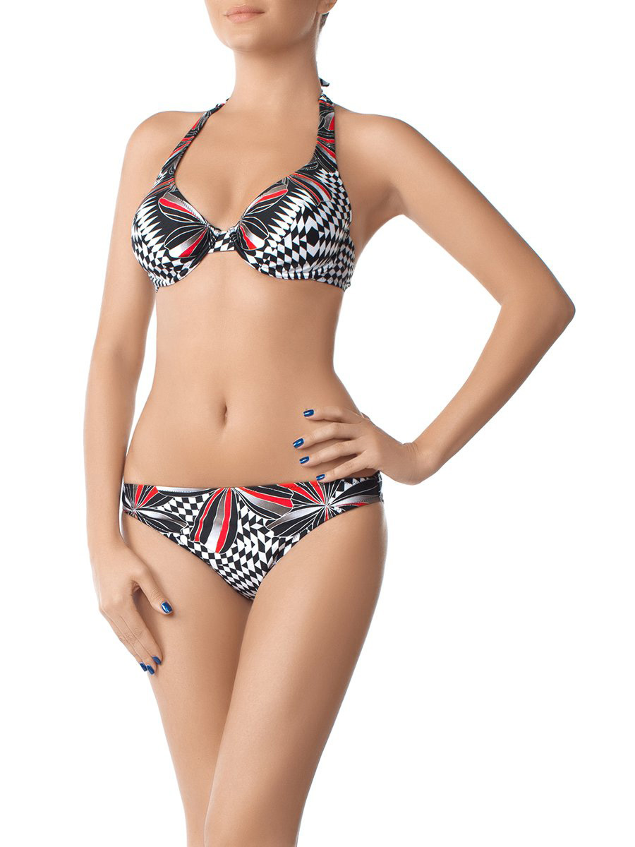 Великолепная пляжная пара для женщин размера плюс. Бюст — глубокие вместительные чашки анатомического кроя, усиленные каркасной поддержкой, с широкими бретелями и с застёжкой на спине. Особое строение бюста отлично собирает и формирует линию груди. Плавки комфортной посадки со средним бочком в размерах 40 и 42, а также плавки глубокой посадки с широким бочком в размерах от 44 до 50. Купальник выполнен таким образом , что позволяет правильно расставить акценты, маскируя недостатки фигуры и подчёркивая её неоспоримые преимущества.