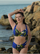 Конструкция бюста - мягкая чашка на каркасах. В боковых деталях использованы пластины упругости. Внутренняя боковая поверхность чашки дублирована неэластичной сеткой, что позволяет иметь в большом размере идеальную посадку. Плавки выше средней линии талии, легкая драпировка в боковых элементах визуально корректирует силует фигуры. Интересная находка дизайнеров -яркий красочный акварельный принт в сочетании с ярко-синим полотном. Модель для романтических натур.