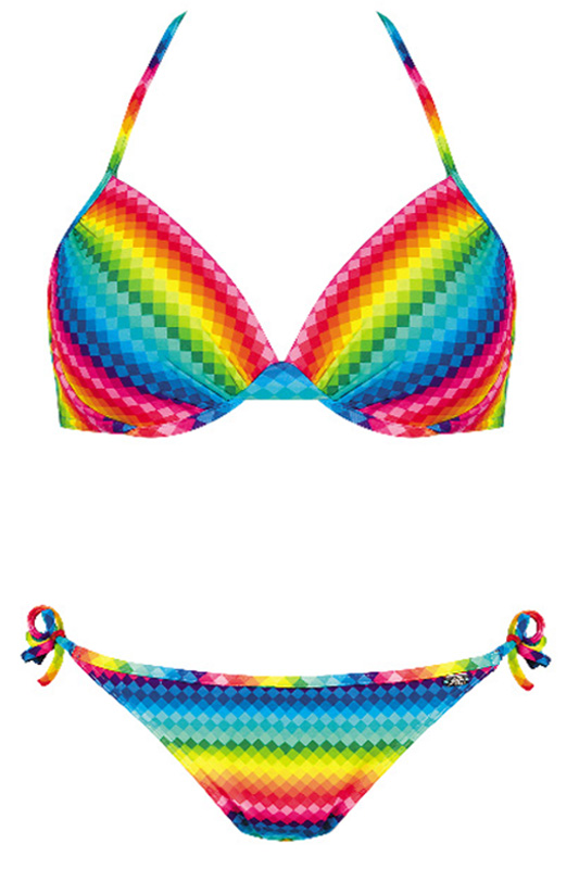 Бюст формованный пуш-ап с завязками через шею и плавки-слип с низкой линией талии на завязках.