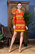 Пляжная туника средней длины выполнена из эластичной сетки с ярким принтом. Модель с кулиской под грудью на шнурке из основного материала, которая позволяет регулировать необходимый объем изделия. V-ый вырез горловины с небольшим запахом, обработан обтачкой. Туника с втачным рукавом до локтя, который прикрывает плечи и руки от палящего солнца.