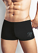 Купальные шорты комфортной посадки выполнены из однотонного полотна. Изделие дополнено стильным имиджевым принтом и шнуром с наконечниками.