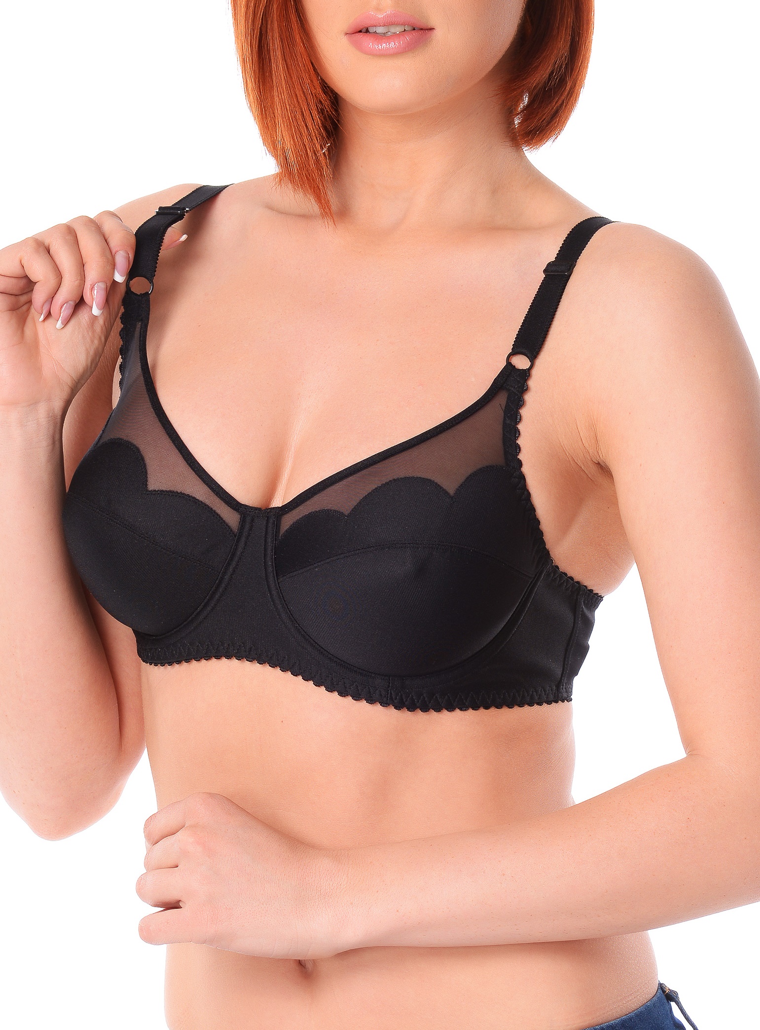 Бюстгальтер с мягкими чашками. Стильный, современный дизайн - отличительная черта этой модели. Оригинальная верхняя часть чашек с уникальной отделкой в виде лепестков. Нижняя и боковые линии модели также выполнены с интересной отделкой. Широкая спинка, застежка на двух крючках.