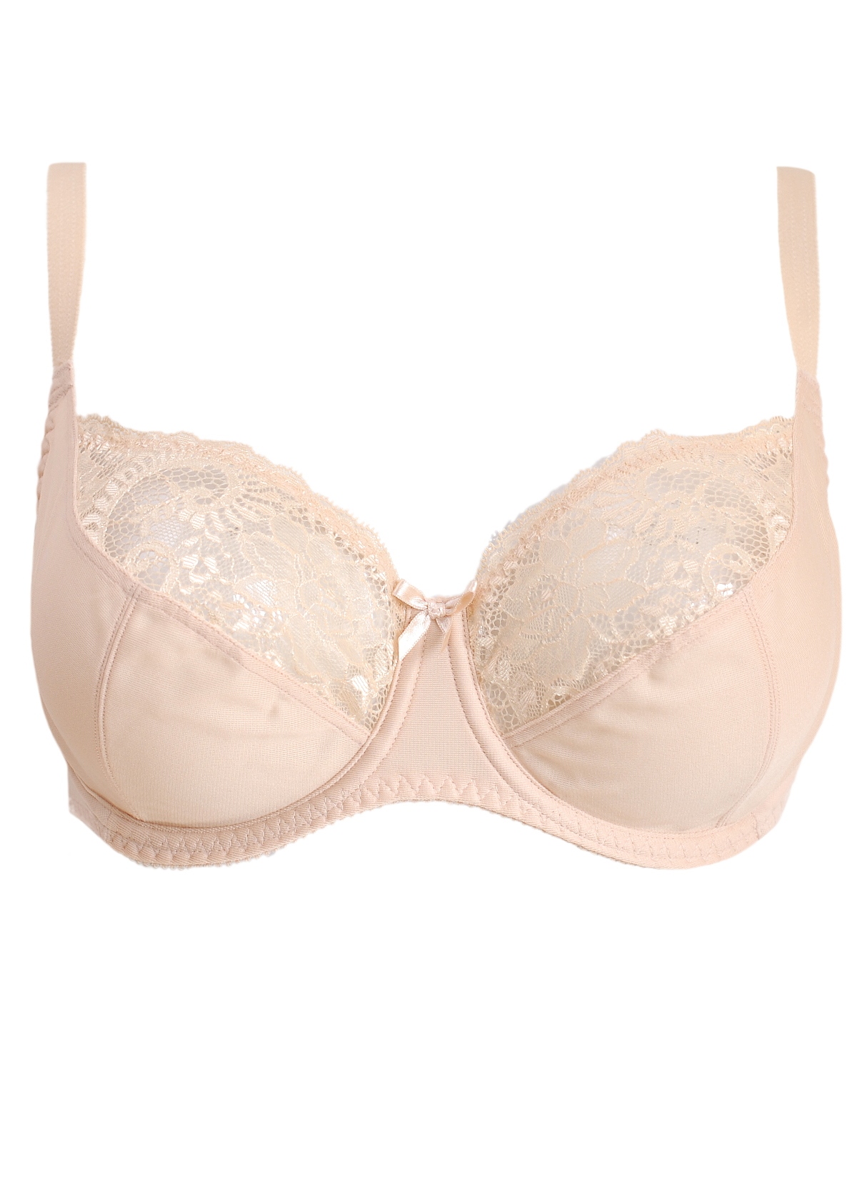 Бюстгальтер из эластичного кружева, неэластичного трикотажного полотна и эластичного трикотажного полотна. На каркасах.