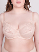 Бюстгальтер из эластичного полотна и эластичного кружева, эластичного сетчатого полотна, трикотажного полотна, На каркасах. Мягкие чашки с двойным членением. Нижние детали чашек на подкладке из неэластичного трикотажного хлопкового полотна.