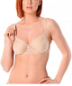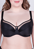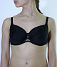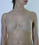 Бюстгальтер выполнен из комбинации эластичного и неэластичного полотен. Мягкие чашки с тройным диагональным членением придают бюсту округлую форму. Украшением этой модели является имитация шнуровки из атласной ленты и бантик.