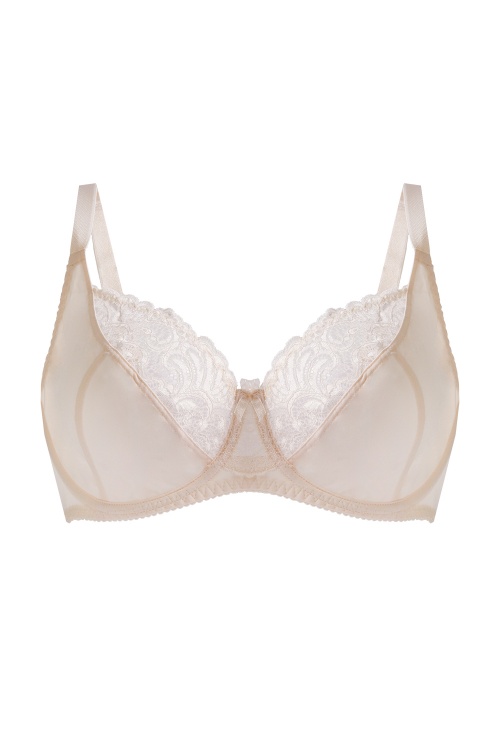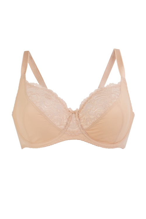 Бюстгальтер с мягкими чашками на каркасах выполнен из эластичного трикотажа и эластичного кружева. Конструкция чашек с тройным диагональным членением для придания груди красивой округлой формы. Удобная элегантная модель, идеально подойдет женщинам со средним и большим размером бюста.