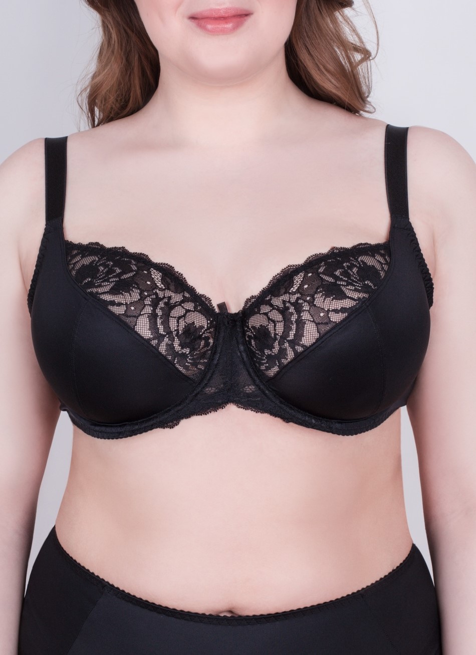 Бюстгальтер из эластичного жаккардового трикотажного полотна, функционального эластичного трикотажного полотна и эластичного кружева, На косточках. Мягкие чашки с тройным членением и боковой корректирующей деталью.