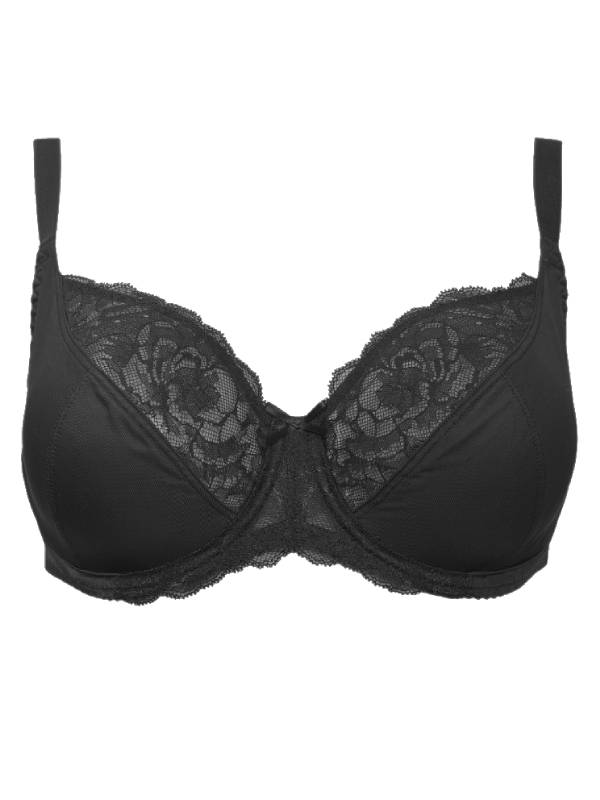 Бюстгальтер из эластичного трикотажного полотна и эластичного кружева. Мягкие чашки на каркасах с тройным диагональным членением, такая конструкция создает округлую форму груди. Используется четырехрядная застежка, что позволяет идеально отрегулировать объем бюстгальтера. Ширина бретелей и застежки изменяется в зависимости от размера бюстгальтера.