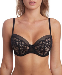 Мягкая чашка на каркасе в форме балконет приподнимает и собирает грудь к центру, создавая эффект пышного бюста. Износостойкий материал, из которого выполнено изделие, способствует его формоустойчивости, долговечности, а главное - воздухопроницаемости. Отсутствие лишних деталей делает эту модель невероятно легкой и удобной, дарит комфорт во время носки и не сковывает движения. Особая конструкция бюстгальтера максимально открывает линию декольте, поэтому модель является идеальным вариантом под топы и платья с вырезом любой формы.