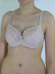 Бюстгальтер с мягкими легкими чашками на каркасах в кружевном стане. Тройной диагональный шов на чашках слегка приподнимает бюст и хорошо поддерживат его с боку.
