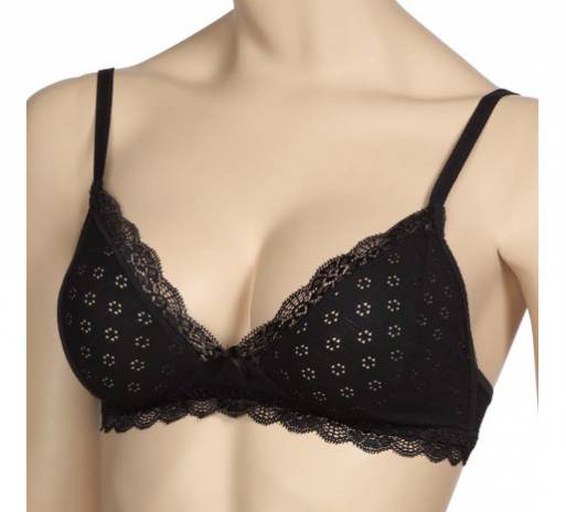 Бюстгальтер с мягкой чашкой Черемушки. Хлопчатобумажное трикотажное полотно, узкое эластичное кружево.