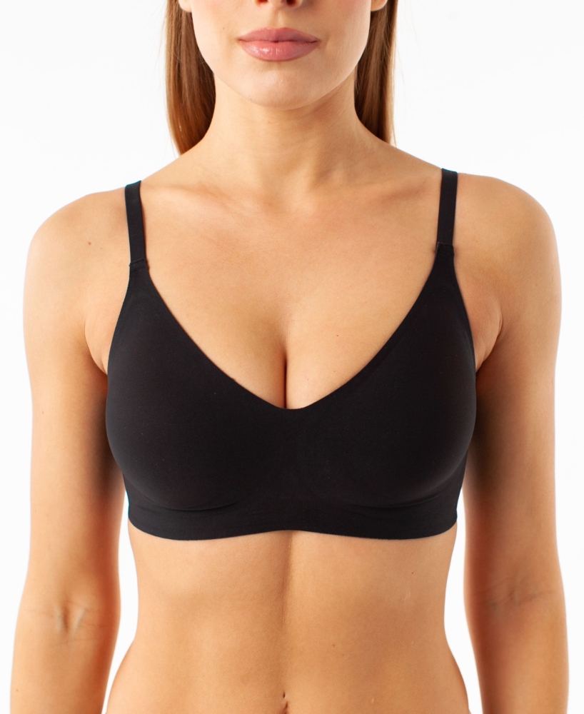 Бесшовный, бескаркасный бюстгальтер из приятного, гладкого, эластичного „clean cut” материала. Формованные вкладыши с вработанным дополнительным объёмом в нижней части. Бюстгальтер из двух слоёв полотна. Слоя соединены между собой методом горячего склеивания. Чрезвычайно удобные широкие боковые детали стана. Застёжка плоская, клееная. Бретели пришитые, с регуляцией.