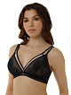 Бюстгальтер черного цвета с мягкой треугольной чашкой без каркасов. Оказывает эффект лёгкой поддержки. Широкий стан с боковыми упругими пластинами плотно облегает тело и обеспечивает стабильную комфортную посадку бюстгальтера на фигуре.