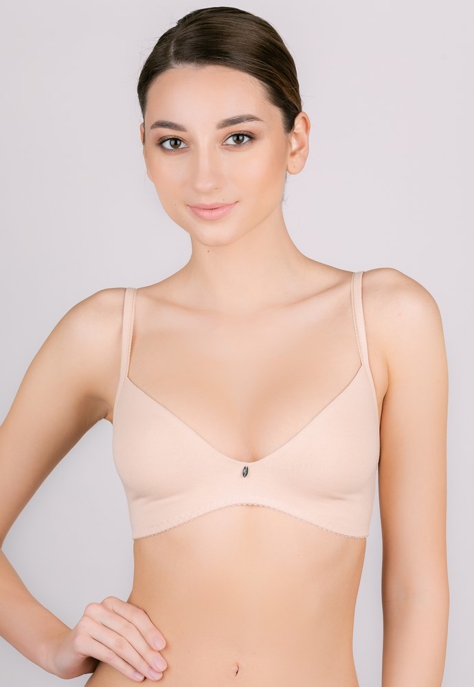 Бюстгальтер с мягкой формованной чашкой из эластичного трикотажного хлопкового полотна. Без косточек. Мягкая комфортная бретель.