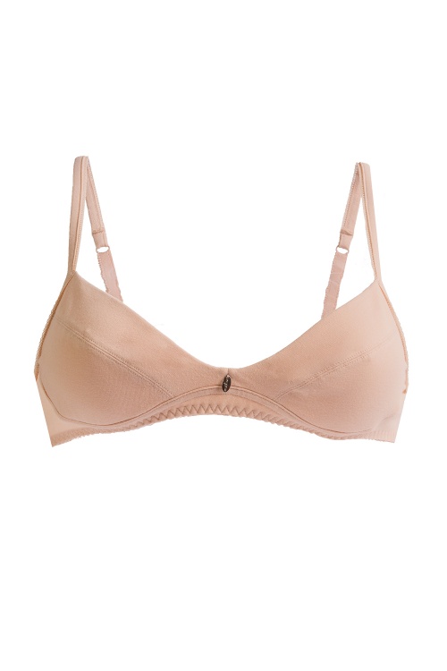 Бюстгальтер без каркасов. Мягкие чашки с двойным членеением на подкладке из неэластичного трикотажного хлопкового полотна.