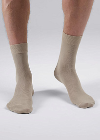Соотносите носки и брюки. Во взаимоотношениях носки-брюки носки должны быть темнее брюк, работать в той же тональности (например, светло-серые брюки, носки графит). Исключение могут составлять брюки цвета хаки, бежевого, желтовато-коричневого. В этом случае носки нужно соотносить с обувью: носки должны быть на тон темнее туфель.