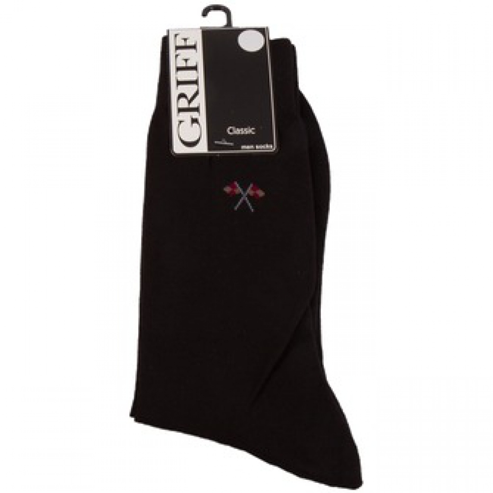 Хлопковые мужские носки с комфортной широкой резинкой, по бокам цветной рисунок "флажки".