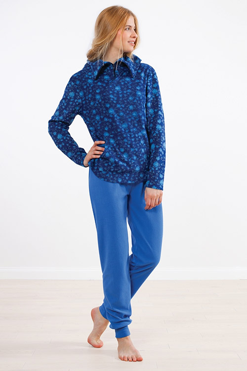 Женская теплая домашняя пижама ,Верх пижамы представлен мягкой толстовкой с карманами-"кенгуру" и воротником на молнии. Брюки с широкими манжетами и широким мягким поясом. Этот пижамный комплект можно использовать также как домашнюю или спортивную одежду.