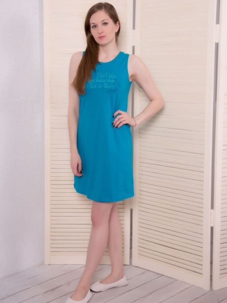 Удобная домашняя туника с орнаментом, длиной до линии колен, свободной формы, без рукавов, круглый вырез горловины. Выполнена из мягкого хлопка, приятная к телу. Отличный вариант на каждый день.