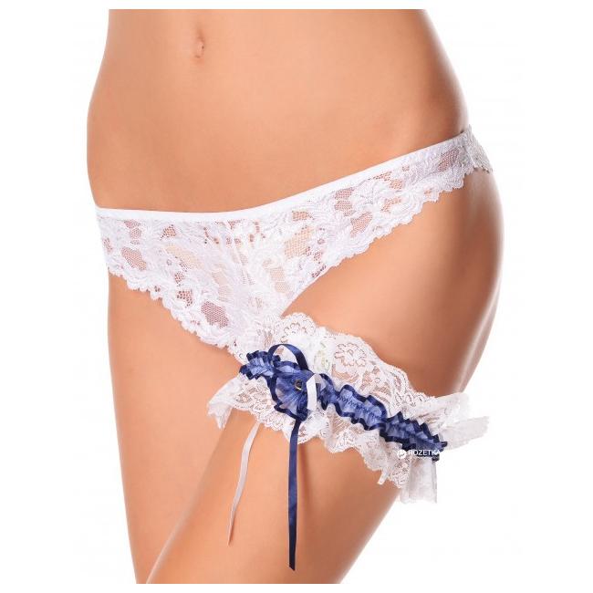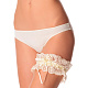 Подвязка кружевная на мягкой резинке. Посередине подвязка дополнена гипюровой тесьмой с атласной окантовкой и украшена гипюровым бантом с двумя золотыми кольцами - символами свадьбы. Шикарное дополнение к наряду невесты. Коллекция "Basic Lace"