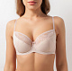Бюстгальтер на поролоне типа “балконет” на каркасах. Чашки выполнены из эластичного кружева. Чашки бюстгальтера на дубляже с хлопком.