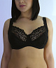 Классический бюстгальтер из эластичного кружевного полотна.Верхняя деталь чашки выполнена из эластичного кружева, остальные детали - микрофибра. Нижняя деталь чашки продублирована поролон с хлопком.Широкие бочки из микрофибры укреплены вертикальными каркасами, которые помогают сохранять форму стана. Бретели из эластичной тесьмы. Регуляторы длины сзади.
