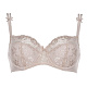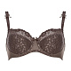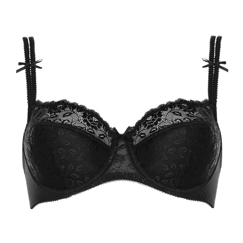 Бюстгальтер „Semi Soft“. В изделии поролоном продублирована нижняя часть чашки, которая поддерживает грудь снизу и сбоку. • Внутренняя часть чашки бюстгальтера и ластовица трусов изготовлены из хлопкового полотна. • Верхняя часть чашки обработана эластичной тесьмой — это помогает кружеву прилегать к груди и не дает ему растянуться при носке. • Боковые детали стана обработаны плотным эластичным полотном и отделочной лентой. • Серединка бюстгальтера уплотнена специальным трикотажным полотном, которое соединяет обе чашки и помогает удерживать стабильную форму бюстгальтера. • Регуляторы и каркасы изготовлены из сплавов металлов, не вызывающих аллергию. • В середину каркасной ленты вставлен слой трикотажного полотна, который не позволяет выходить каркасам и придает ленте мягкость. • Концы металлических каркасов защищены специальной капсулой. • Застежка бюстгальтера подобрана для изделий больших размеров, поэтому сила растяжения равномерно распределяется по всему объему. • Все используемые материалы подтверждены сертификатом Oeko-Tex 100.