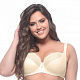 Женский бюстгальтер с полупоролоновой глубокой чашкой. Поролон в нижней части чашки приподнимает надежно фиксирует грудь. Кружево усилено подкладкой из эластичной сетки для дополнительной прочности. Новое решение дизайна центральной детали с единой линией кружева придает бюстгальтеру элегантность и лаконичность. Ширина застежки и бретелей зависит от размера: чем больше размер, тем они шире.