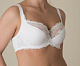 Бюстгальтер классической конструкции с нижней дублированной деталью. Верхние детали чашек выполнены из полупрозрачной сетки.