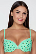Бюстгальтер классической формы с формованной чашкой с Push-ap для размеров 70AB, 75ABC, 80B и без Push-ap для размеров 70C, 75DE, 80CDE, 85BCD. Детали бюстгальтера выполнены из эластичного принтованного полотна и эластичной сетки и декорированы узким кружевом. Центральная деталь декорирована бантиком. Бретели эластичные, съёмные.