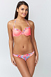 Купальник раздельный, выполненный из яркой классической купальной ткани. Бюстгальтер классической формы с формованной чашкой с Push-up для размеров 70AB, 75ABC, 80B и 6eз Push-up для размеров 70C, 75DE, 80CDE, 85BCD. Чашка декорирована рюшей из принтованного купальной ткани. Центральная деталь декорирована бантиком. Бретели эластичные, несъемные. Трусы классические.