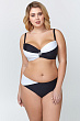 Купальник раздельный, выполненный из классической купальной ткани контрастных цветов. Бюстгальтер формы T-Shirt с формованной чашкой без Push-up для всех размеров. Центральная деталь декорирована пряжкой. Бретели эластичные, состоят из двух частей. Задние бретели отстегивающиеся, что позволяет застегнуть передние бретели на шее. Трусы классические.