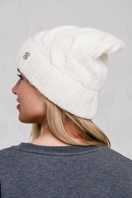 Удлиненная шапка среднего объема на флисе с фиксированным отворотом. Переплетение пряжи в виде кос. Можно заказать в комплекте с Jardine снудом.